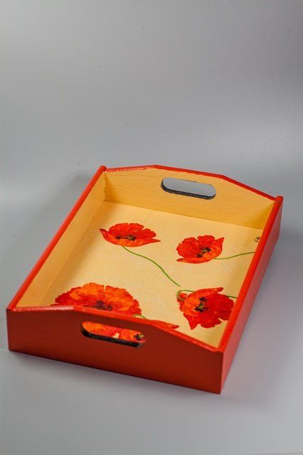 Holztablett bearbeitet mit Servietten-technik und Acrylfarben