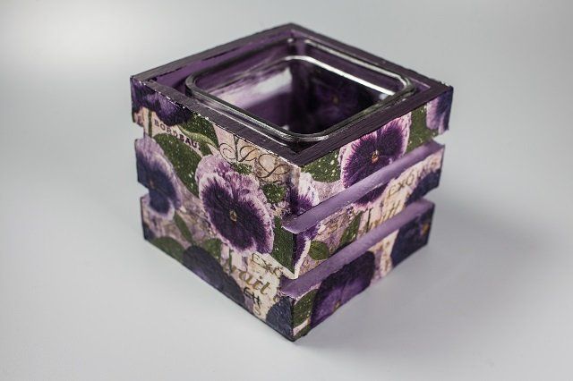 Holzblumenkästchen bearbeitet mit Serviettentechnik und Acrylfarben